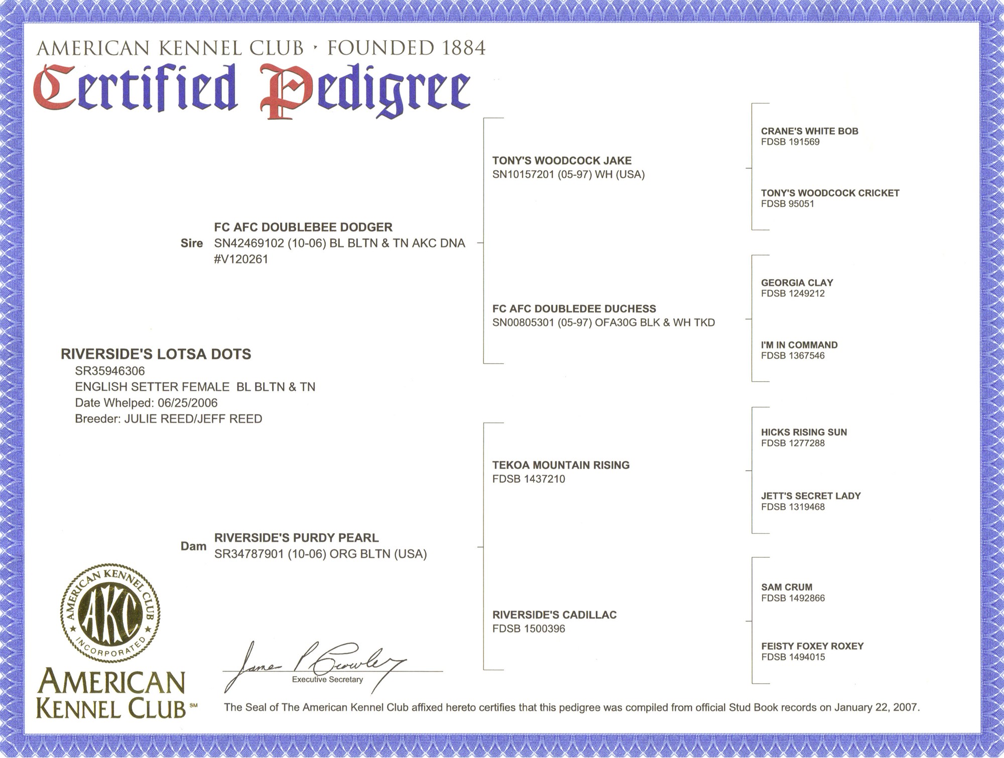 Click Here for Dot's Pedigree